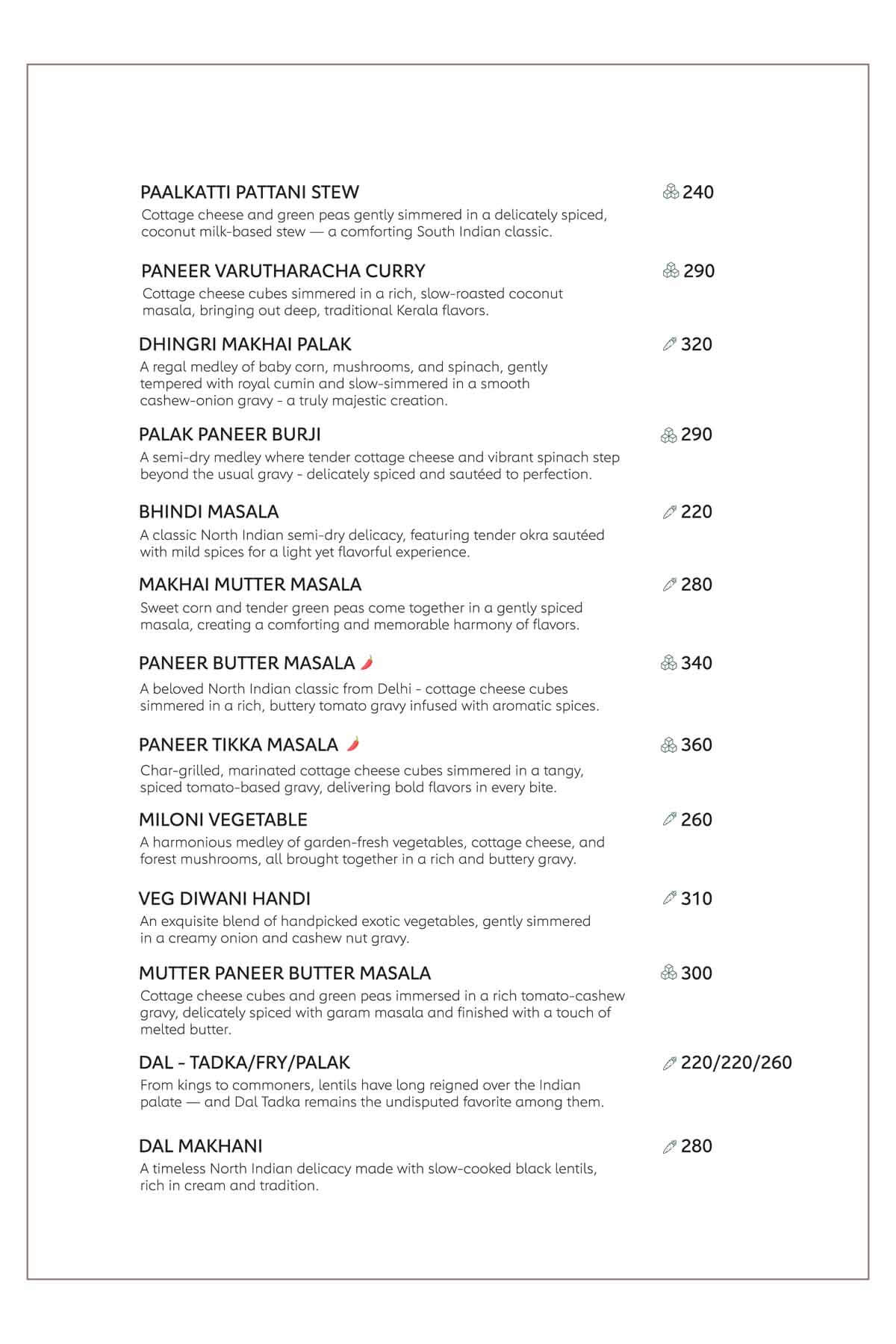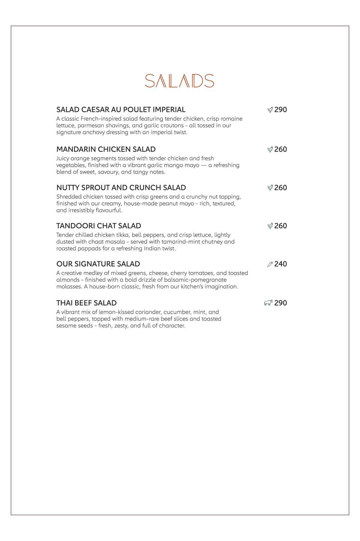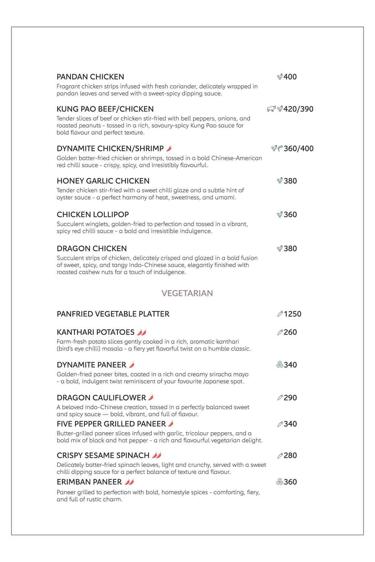 Here's our menu with the refined pleasures of royal Indian traditions, Thai, Japanese, Chinese, Tibetan, Arabic cuisines in a versatile way to sooth your tastebuds with the burst of flavours and multifariousness