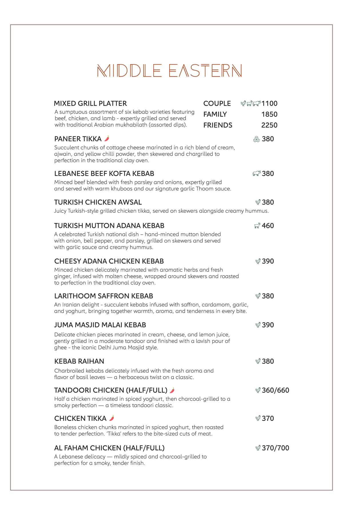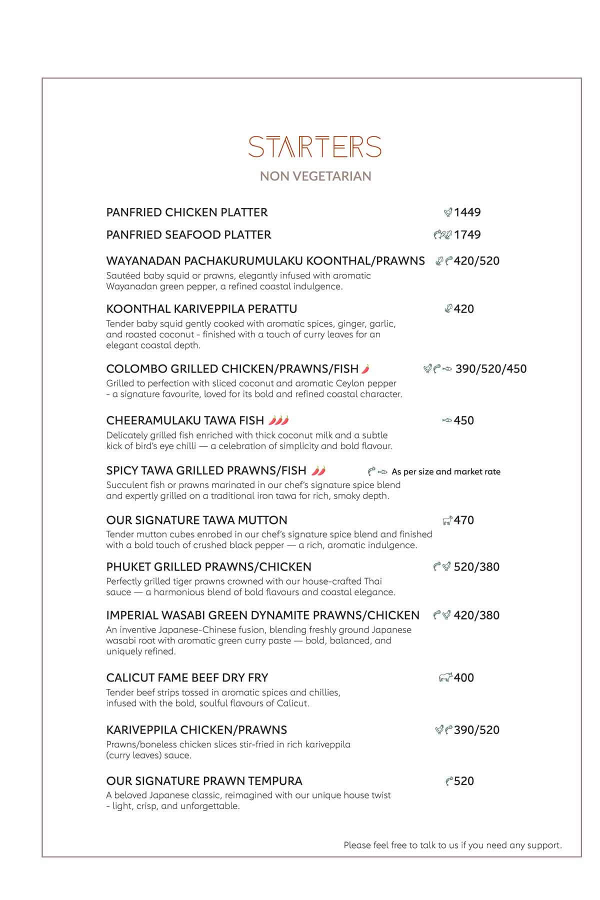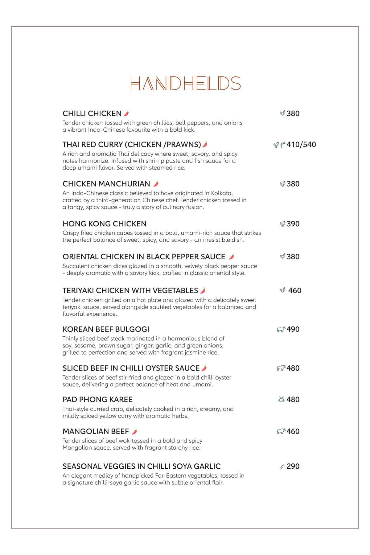 Here's our menu with the refined pleasures of royal Indian traditions, Thai, Japanese, Chinese, Tibetan, Arabic cuisines in a versatile way to sooth your tastebuds with the burst of flavours and multifariousness